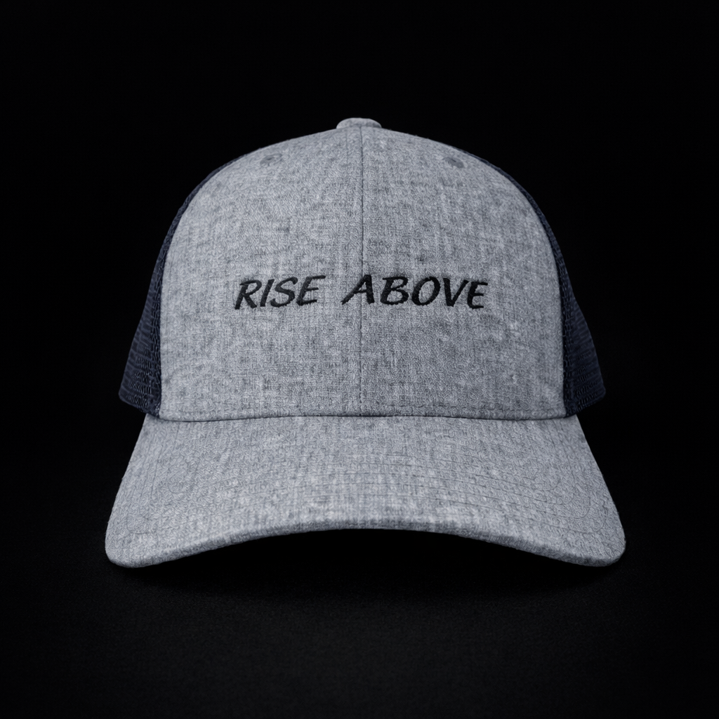 A modern gray cap worn with confidence, featuring the embroidered message ‘Rise Above’. Designed for those who stay focused under pressure, this cap blends minimal style with a powerful mindset. Whether on the field or in everyday life, it represents discipline, resilience, and leadership.